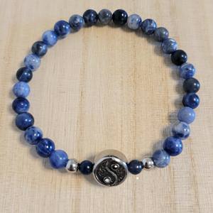 Bracelet en Labradorite véritable avec symbole Ohm en acier inoxydable. Pierre aux vertus protectrices, permet de se préserver des énergies négatives et repose en cas de grande fatigue.